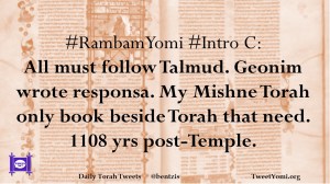 #RambamYomi #Intro C: All must follow Talmud. Geonim wrote responsa. My Mishne Torah only book beside Torah that need. 1108 yrs post-Temple.