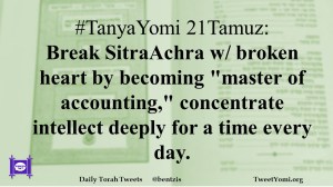 #TanyaYomi 21Tamuz: Break SitraAchra w/ broken heart by becoming “master of accounting,” concentrate intellect deeply for a time every day.