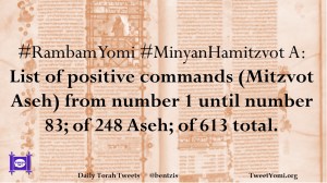 #RambamYomi #MinyanHamitzvot A: List of positive commands (Mitzvot Aseh) from number 1 until number 83; of 248 Aseh; of 613 total.