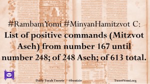 #RambamYomi #MinyanHamitzvot C: List of positive commands (Mitzvot Aseh) from number 167 until number 248; of 248 Aseh; of 613 total.