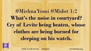 #MishnaYomi #Midot 1:2 What’s the noise in courtyard? Cry of Levite being beaten, whose clothes are being burned for sleeping on his watch.
