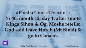 #ParshaYomi #Dvarim 1: Yr 40, month 12, day 1, after smote Kings Sihon & Og, Moshe retells: God said leave Horeb (Mt Sinai) & go to Canaan.