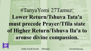 #TanyaYomi 27Tamuz: Lower Return/Tshuva Tata’a must precede Prayer/Tfila state of Higher Return/Tshuva Ila’a to arouse divine compassion.