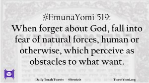 #EmunaYomi 519: When forget about God, fall into fear of natural forces, human or otherwise, which perceive as obstacles to what want.