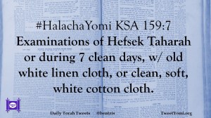 #HalachaYomi KSA 159:7 Examinations of Hefsek Taharah or during 7 clean days, w/ old white linen cloth, or clean, soft, white cotton cloth.