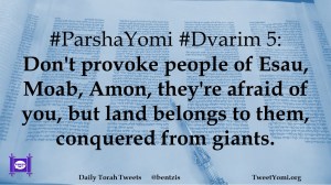 #ParshaYomi #Dvarim 5: Don’t provoke people of Esau, Moab, Amon, they’re afraid of you, but land belongs to them, conquered from giants.