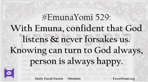 #EmunaYomi 529: With Emuna, confident that God listens & never forsakes us. Knowing can turn to God always, person is always happy.