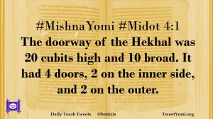 #MishnaYomi #Midot 4:1 The doorway of the Hekhal was 20 cubits high and 10 broad. It had 4 doors, 2 on the inner side, and 2 on the outer.