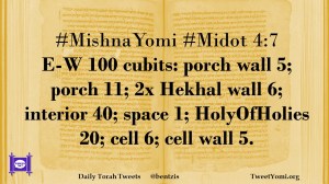 #MishnaYomi #Midot 4:7 E-W 100 cubits: porch wall 5; porch 11; 2x Hekhal wall 6; interior 40; space 1; HolyOfHolies 20; cell 6; cell wall 5.