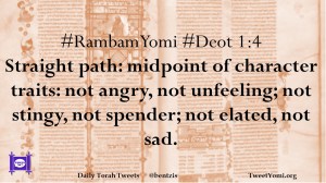 #RambamYomi #Deot 1:4 Straight path: midpoint of character traits: not angry, not unfeeling; not stingy, not spender; not elated, not sad.
