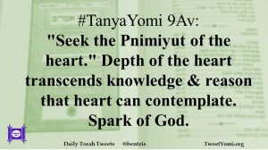 #TanyaYomi 9Av: “Seek the Pnimiyut of the heart.” Depth of the heart transcends knowledge & reason that heart can contemplate. Spark of God.