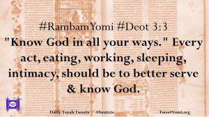 #RambamYomi #Deot 3:3 “Know God in all your ways.” Every act, eating, working, sleeping, intimacy, should be to better serve & know God.