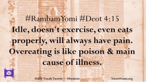 #RambamYomi #Deot 4:15 Idle, doesn’t exercise, even eats properly, will always have pain. Overeating is like poison & main cause of illness.