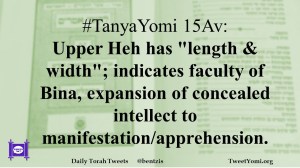#TanyaYomi 15Av: Upper Heh has “length & width”; indicates faculty of Bina, expansion of concealed intellect to manifestation/apprehension.