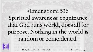 #EmunaYomi 536: Spiritual awareness: cognizance that God runs world, does all for purpose. Nothing in the world is random or coincidental.