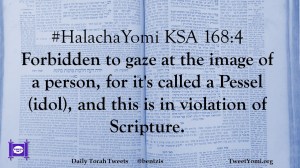 #HalachaYomi KSA 168:4 Forbidden to gaze at the image of a person, for it’s called a Pessel (idol), and this is in violation of Scripture.