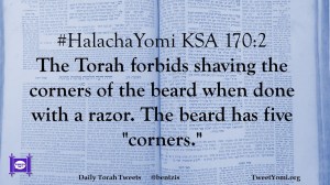 #HalachaYomi KSA 170:2 The Torah forbids shaving the corners of the beard when done with a razor. The beard has five “corners.”