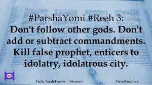 #ParshaYomi #Reeh 3: Don’t follow other gods. Don’t add or subtract commandments. Kill false prophet, enticers to idolatry, idolatrous city.