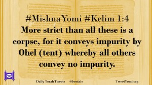 #MishnaYomi #Kelim 1:4 More strict than all these is a corpse, for it conveys impurity by Ohel (tent) whereby all others convey no impurity.