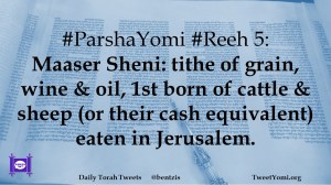 #ParshaYomi #Reeh 5: Maaser Sheni: tithe of grain, wine & oil, 1st born of cattle & sheep (or their cash equivalent) eaten in Jerusalem.