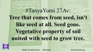 #TanyaYomi 27Av: Tree that comes from seed, isn’t like seed at all. Seed gone. Vegetative property of soil united with seed to grow tree.