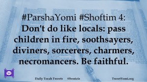 #ParshaYomi #Shoftim 4: Don’t do like locals: pass children in fire, soothsayers, diviners, sorcerers, charmers, necromancers. Be faithful.