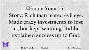#EmunaYomi 551: Story: Rich man feared evil eye. Made crazy investments to lose it, but kept winning. Rabbi explained success up to God.