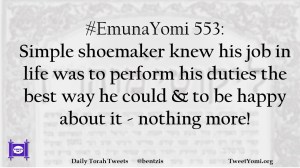 #EmunaYomi 553: Simple shoemaker knew his job in life was to perform his duties the best way he could & to be happy about it – nothing more!