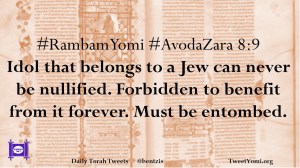 #RambamYomi #AvodaZara 8:9 Idol that belongs to a Jew can never be nullified. Forbidden to benefit from it forever. Must be entombed.