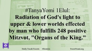 #TanyaYomi 1Elul: Radiation of God’s light to upper & lower worlds effected by man who fulfills 248 positive Mitzvot, “Organs of the King.”