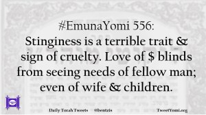 #EmunaYomi 556: Stinginess is a terrible trait & sign of cruelty. Love of $ blinds from seeing needs of fellow man; even of wife & children.