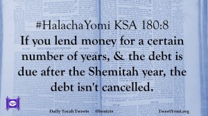 #HalachaYomi KSA 180:8 If you lend money for a certain number of years, & the debt is due after the Shemitah year, the debt isn’t cancelled.