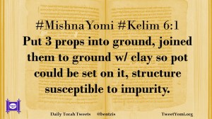 #MishnaYomi #Kelim 6:1 Put 3 props into ground, joined them to ground w/ clay so pot could be set on it, structure susceptible to impurity.