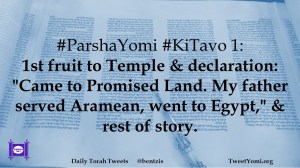 #ParshaYomi #KiTavo 1: 1st fruit to Temple & declaration: “Came to Promised Land. My father served Aramean, went to Egypt,” & rest of story.