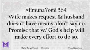 #EmunaYomi 564: Wife makes request & husband doesn’t have means, don’t say no. Promise that w/ God’s help will make every effort to do so.