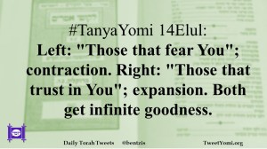 #TanyaYomi 14Elul: Left: “Those that fear You”; contraction. Right: “Those that trust in You”; expansion. Both get infinite goodness.