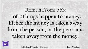 #EmunaYomi 565: 1 of 2 things happen to money: Either the money is taken away from the person, or the person is taken away from the money.