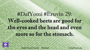 DafYomi, Eruvin #DafYomi #Eruvin 29 Date: September 7, 2020Author: ysspitz #DafYomi #Eruvin 29: Well-cooked beets are good for the eyes and the head and even more so for the stomach. Share this: Share on X (Opens in new window) X Share on Facebook (Opens in new window) Facebook Like Loading... Related