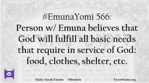 #EmunaYomi 566: Person w/ Emuna believes that God will fulfill all basic needs that require in service of God: food, clothes, shelter, etc.