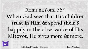 #EmunaYomi 567: When God sees that His children trust in Him & spend their $ happily in the observance of His Mitzvot, He gives more & more.