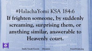 #HalachaYomi KSA 184:6 If frighten someone, by suddenly screaming, surprising them, or anything similar, answerable to Heavenly court.
