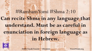 #RambamYomi #Shma 2:10 Can recite Shma in any language that understand. Must be as careful in enunciation in foreign language as in Hebrew.