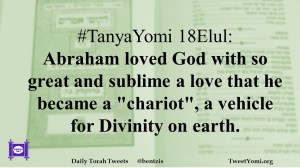 #TanyaYomi 18Elul: Abraham loved God with so great and sublime a love that he became a “chariot”, a vehicle for Divinity on earth.