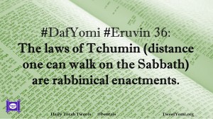 DafYomi, Eruvin #DafYomi #Eruvin 36 Date: September 15, 2020Author: ysspitz #DafYomi #Eruvin 36: The laws of Tchumin (distance one can walk on the Sabbath) are rabbinical enactments. Share this: Share on X (Opens in new window) X Share on Facebook (Opens in new window) Facebook Like Loading... Related