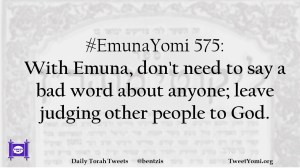 EmunaYomi #EmunaYomi 575 Date: September 15, 2020Author: ysspitz #EmunaYomi 575: With Emuna, don’t need to say a bad word about anyone; leave judging other people to God. Share this: Share on X (Opens in new window) X Share on Facebook (Opens in new window) Facebook Like Loading... Related