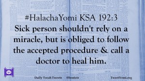 #HalachaYomi KSA 192:3 Sick person shouldn’t rely on a miracle, but is obliged to follow the accepted procedure & call a doctor to heal him.