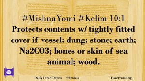 #MishnaYomi #Kelim 10:1 Protects contents w/ tightly fitted cover if vessel: dung; stone; earth; Na2CO3; bones or skin of sea animal; wood.