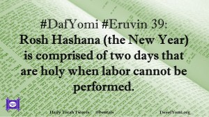 DafYomi, Eruvin #DafYomi #Eruvin 39 Date: September 17, 2020Author: ysspitz #DafYomi #Eruvin 39: Rosh Hashana (the New Year) is comprised of two days that are holy when labor cannot be performed. Share this: Share on X (Opens in new window) X Share on Facebook (Opens in new window) Facebook Like Loading... Related