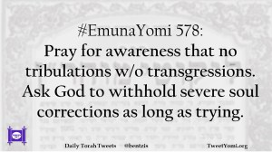 #EmunaYomi 578: Pray for awareness that no tribulations w/o transgressions. Ask God to withhold severe soul corrections as long as trying.