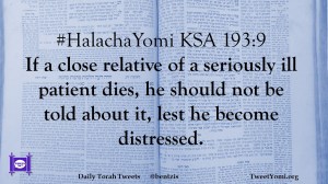 #HalachaYomi KSA 193:9 If a close relative of a seriously ill patient dies, he should not be told about it, lest he become distressed.